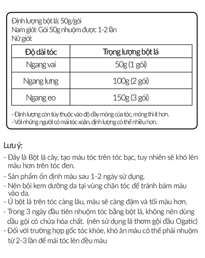 Hướng dẫn sử dụng Bột lá nhuộm tóc Ogatic